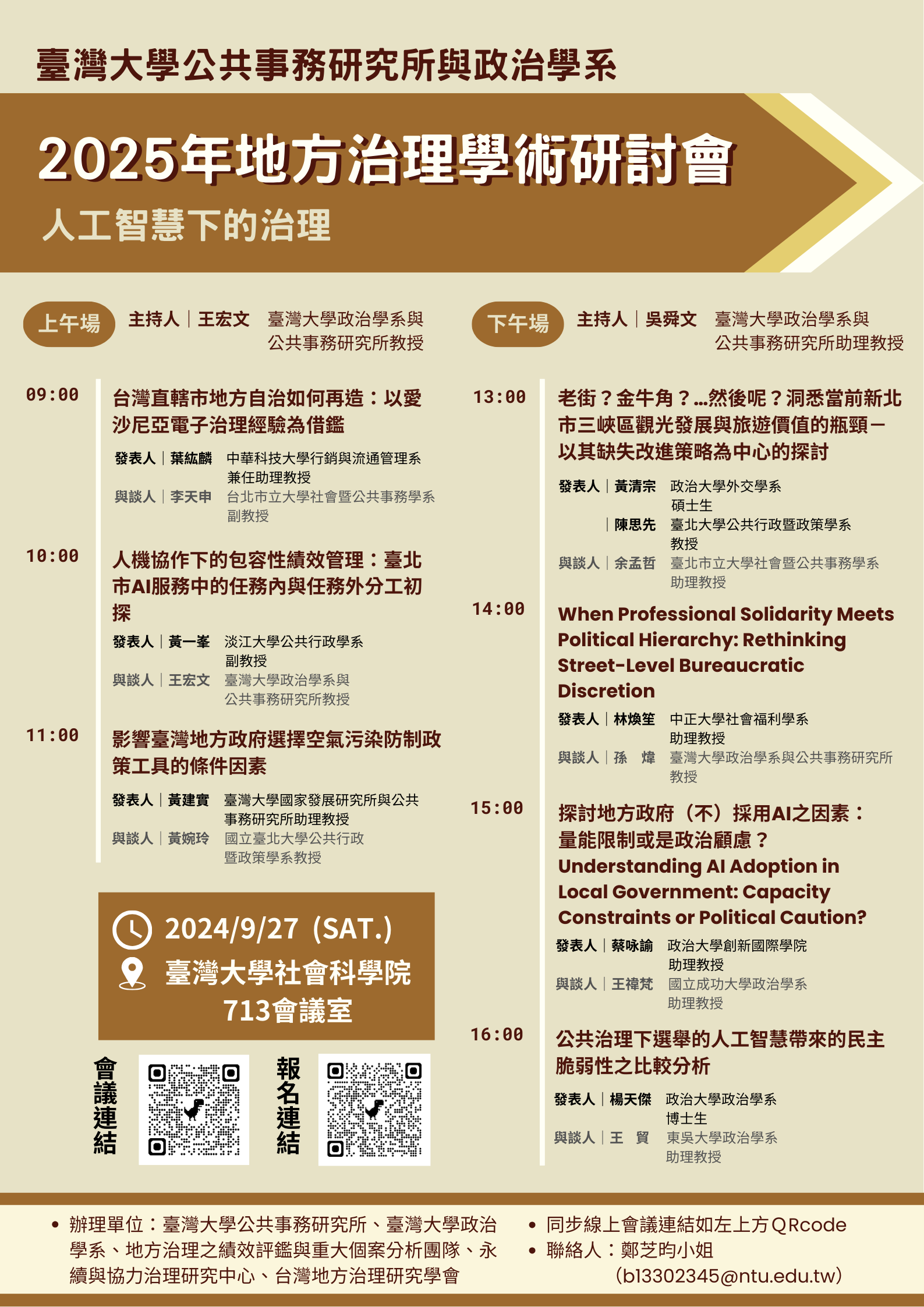 2025年9月27日(六)2025年地方治理學術研討會:人工智慧下的治理