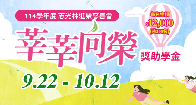 【代公告】114志光慈善會莘莘向榮獎助學金申請(9/22~10/12截止)