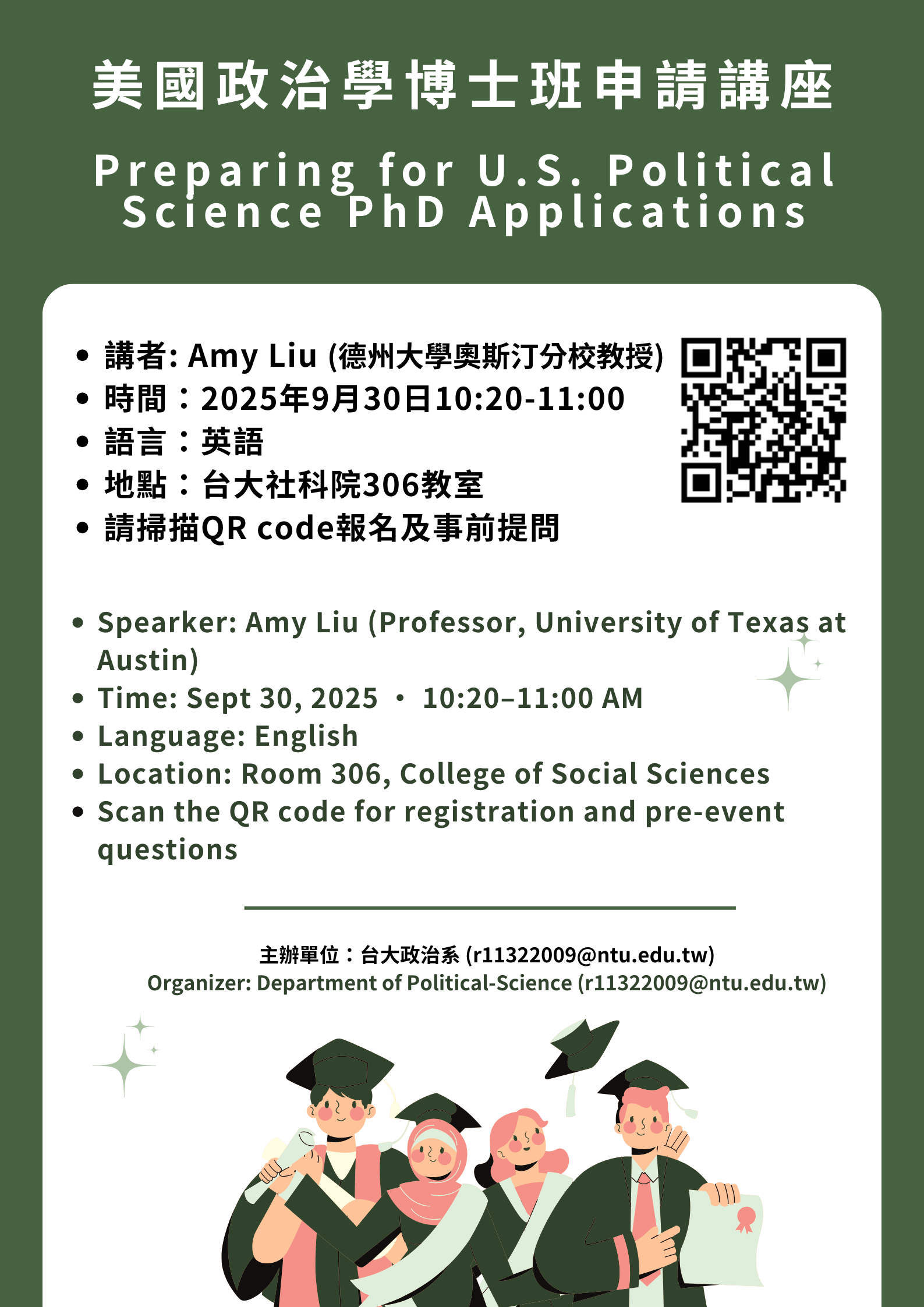 9/30 (二) 美國政治學博士班申請講座 Preparing for U.S. Political Science PhD Applications