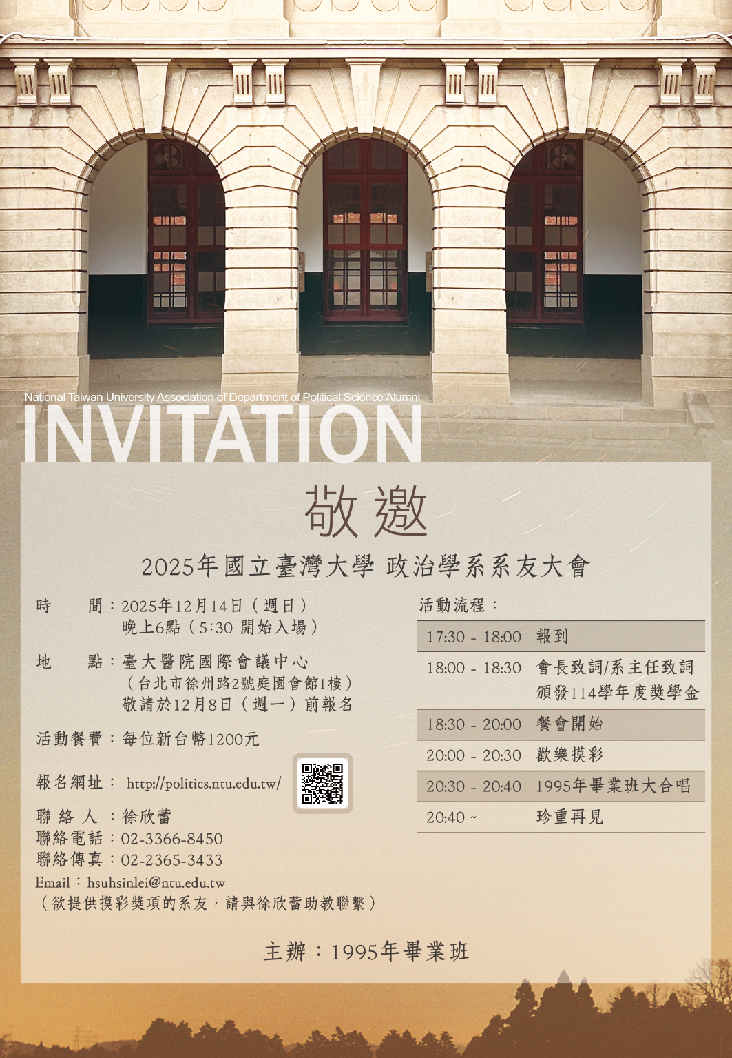 ★歡迎系友踴躍捐贈摸彩品以供同歡 (欲提供摸彩獎項之系友可電:02-3366-8450與徐欣蕾助教聯繫)。