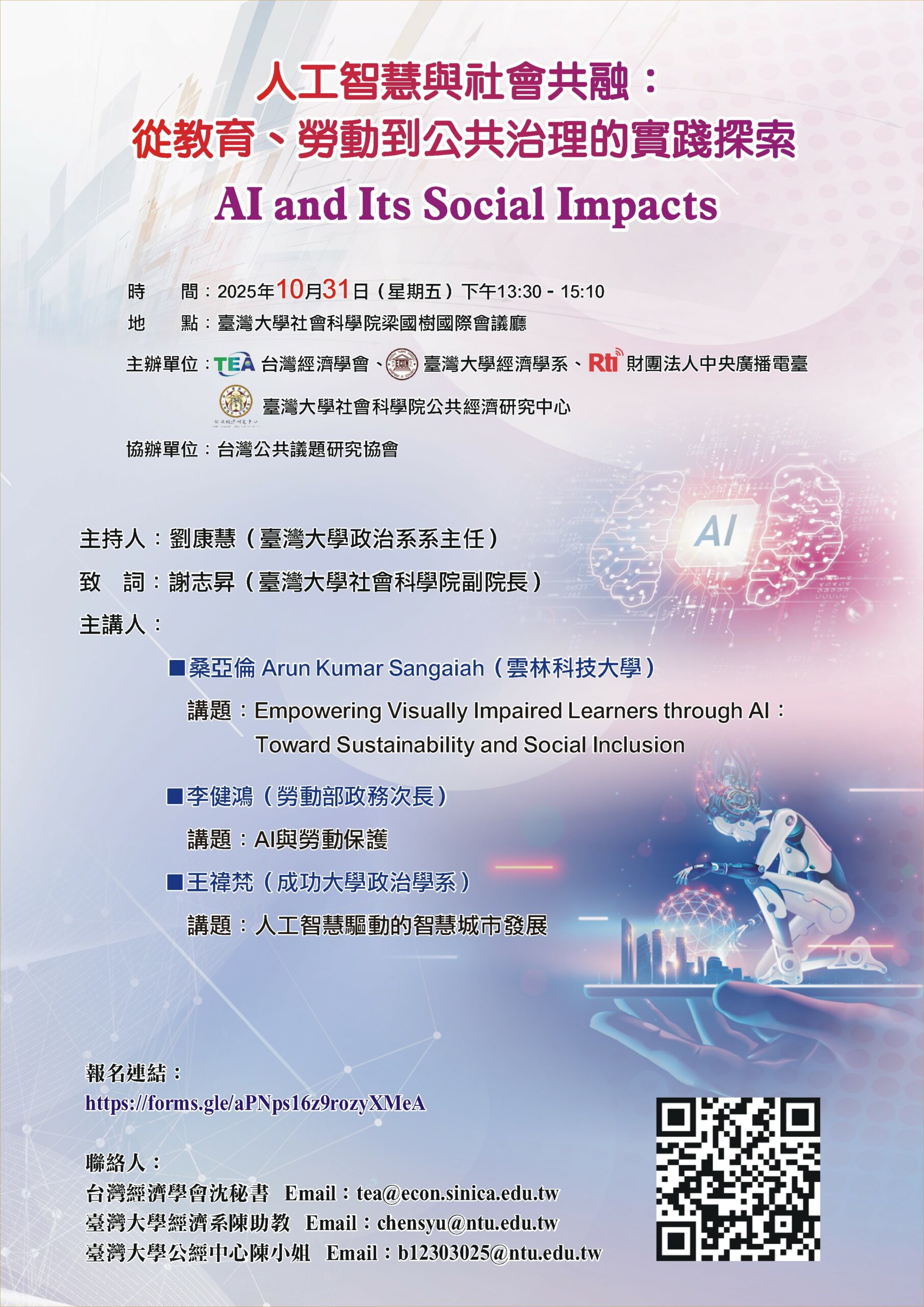 【代公告】人工智慧與社會共融:從教育、勞動到公共治理的實踐探索座談會