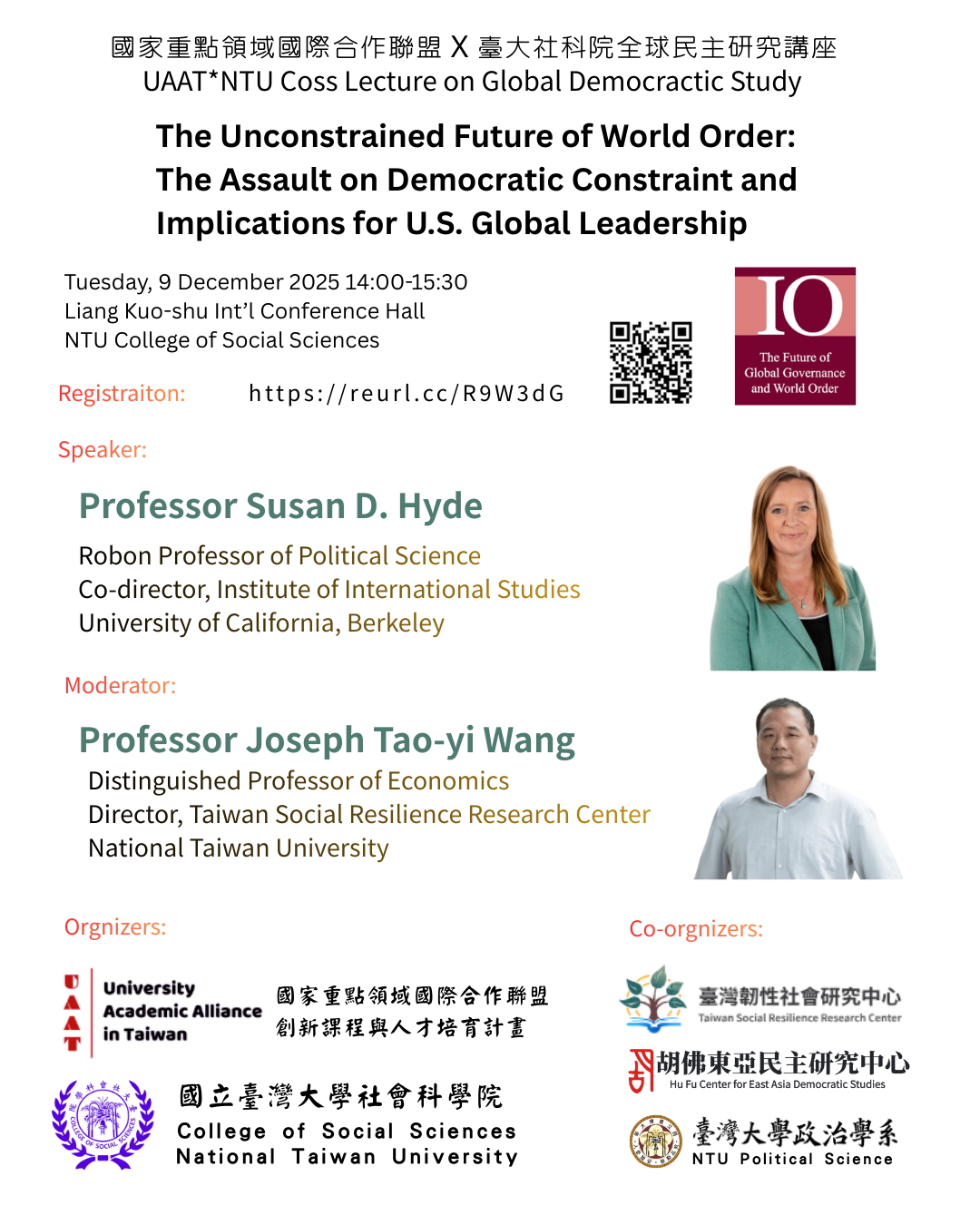 國家重點領域國際合作聯盟*臺大社科院全球民主研究講座 UAAT*NTUCOSS Lecture on Global Democratic Study