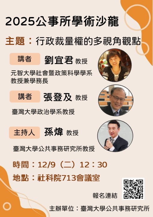 代公告:公事所2025學術沙龍【行政裁量權的多視角觀點】