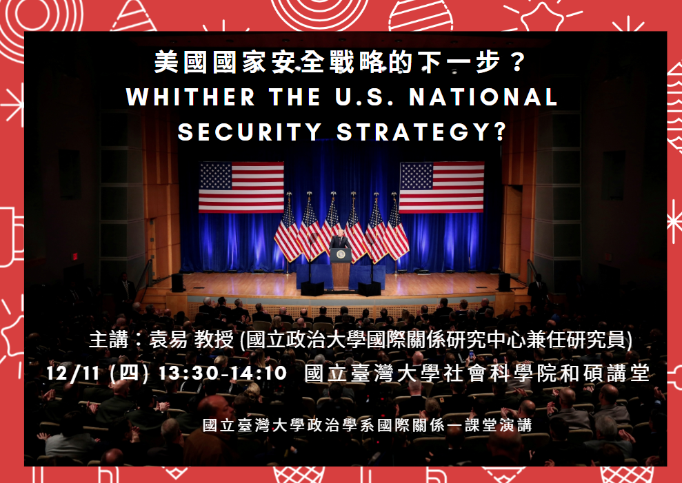 課堂演講 12/11 (四) 13:30-14:10 美國國家安全戰略的下一步?