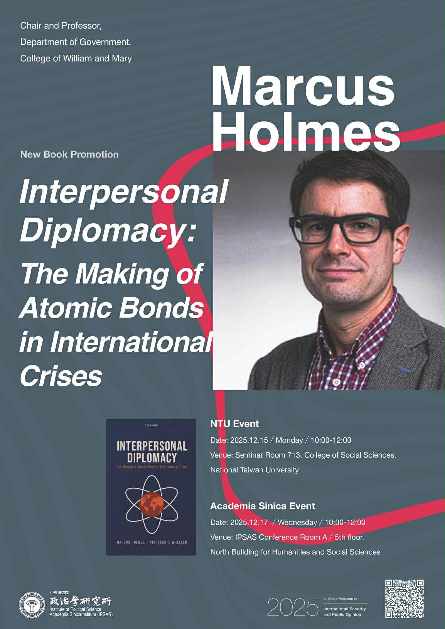演講和新書發表主題:Interpersonal Diplomacy: The Making of Atomic Bonds in International Crises