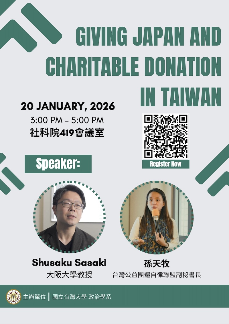 【演講】2026/1/20 大阪大學 Shusaku Sasaki 教授:Giving Japan and Charitable Donation in Taiwan