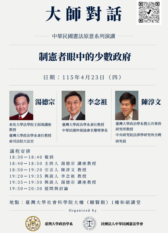 主辦單位:臺灣大學政治學系,社團法人中華民國憲法學會